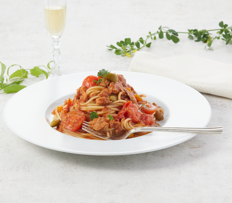 SONOKO アレンジレシピ 麺まぐろ煮みそ味でつくるツナトマトパスタ Print Recipe まぐろ煮みそ味でつくるツナトマトパスタ 材料 まぐろ煮みそ味* 1 袋 具だくさんミネストローネ* 1 袋 その子トマト* 30 g 小麦香る生パスタ* 1 袋 作り方 まぐろ煮1袋、ミネストローネ1袋、その子トマト(30g)、半分にカットしたプチトマト(2個分)を耐熱容器に入れてよく混ぜてから電子レンジで加熱(500Wで2分)する(★)。茹でたての生パスタ1 袋に★をよくからめ、お皿に盛ったら完成。