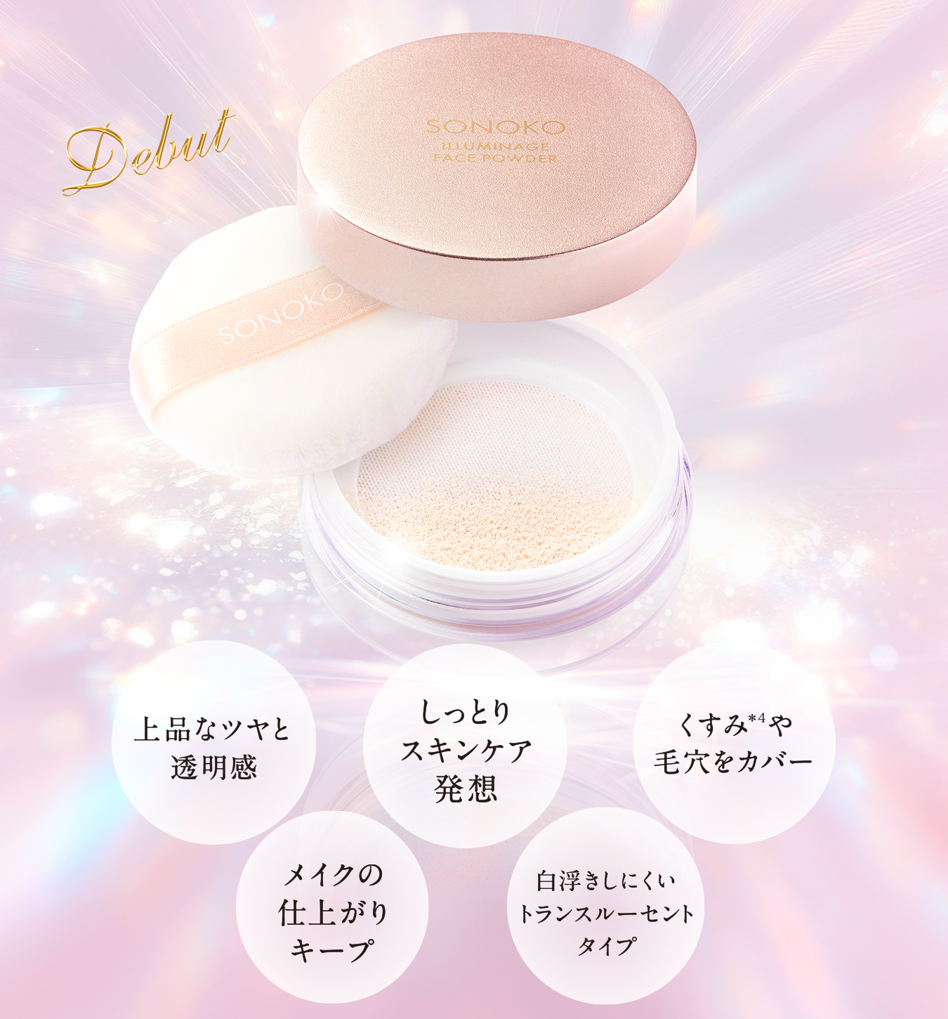 国産の本真珠パウダー※2が自然でやわらかな光沢を与えていきいきとした印象に。 さらにイルミナージュパール※3が光をコントロールしてくすみ※4をカバー。さらに、白浮きしにくいトランスルーセントタイプのパウダーが肌に溶け込むようになじみ、美しくトーンアップ※4します。