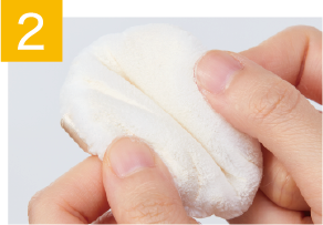 パフの全面に軽くいきわたる程度にパウダーをとる