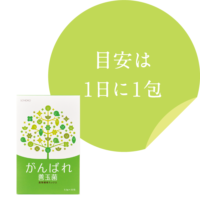 善玉菌のエサとなる水溶性食物繊維やオリゴ糖などをバランスよく配合したサプリメント。