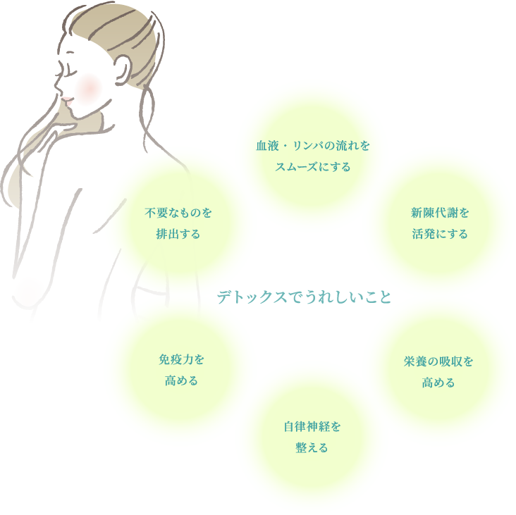 私たちのからだにはリンパが全身を循環し、体内の不要なものをすべて回収しています。スッキリとしたからだづくりのためには、リンパの流れをスムーズにすることが健康のひとつのバロメーターにもなります。