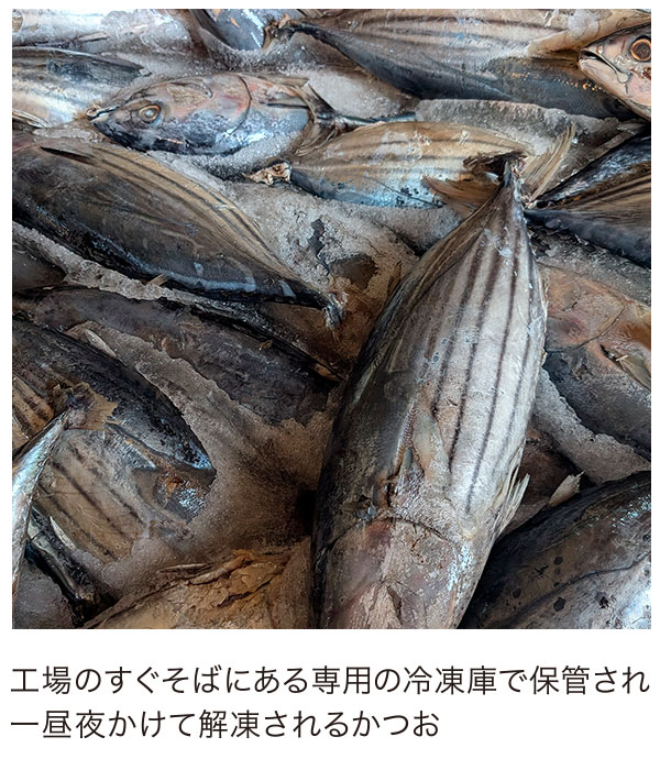このときに重視しているのは、かつおの大切な旨み成分であるイノシン酸が残った状態で解凍をストップすること。